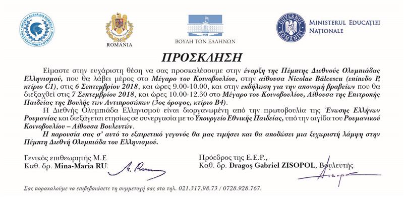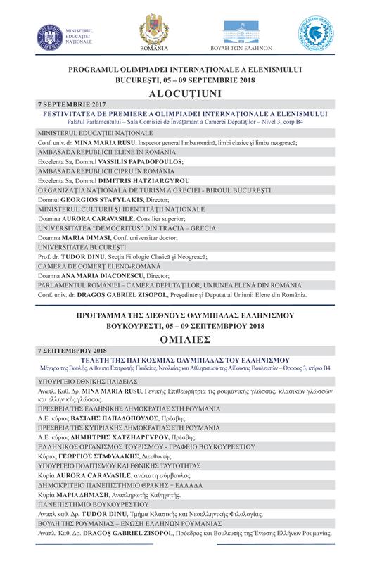 OLIMPIADA INTERNAŢIONALĂ A ELENISMULUI, 5-9 septembrie 2018, Bucureşti